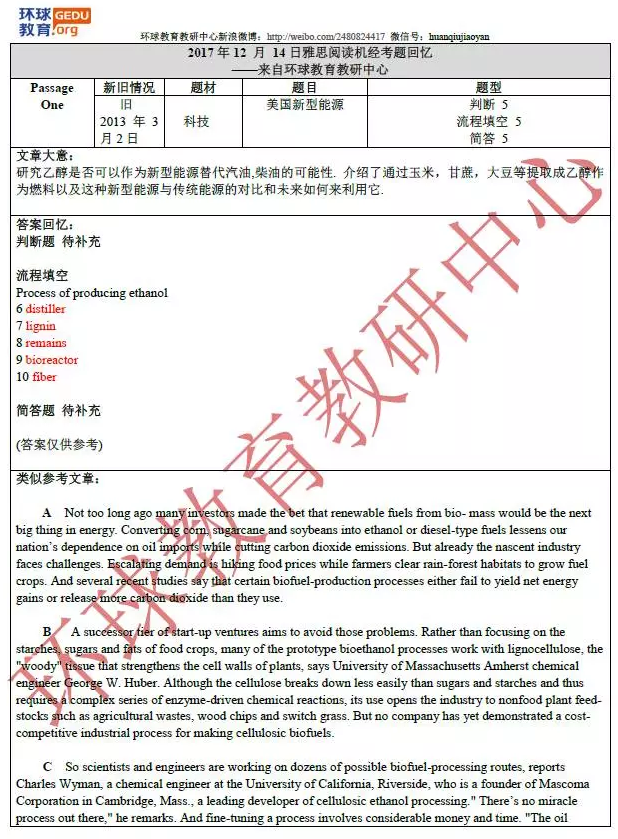 环球教育教研中心的名师们此次为大家送上2017年12月14日雅思听力考试回忆及答案,希望对大家备考雅思有所帮助!