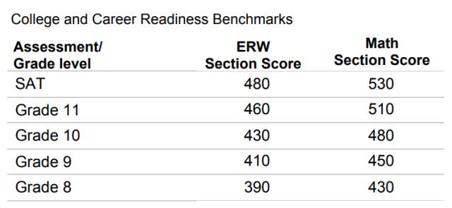 他们通过一系列小编并看不懂的算法,告诉我们一个基准线:学生有75%的几率达到C及以上的成绩水平。在SAT 中,阅读与写作的基准线是480分,数学是530分。也就是说,如果SAT只有1000分左右的话,大学里面还不能保C呢!